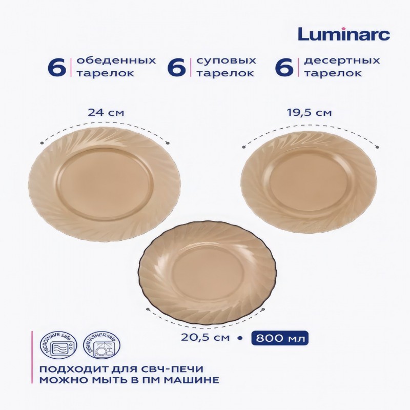 Luminarc Ocean Eclipse, 44 ta predmet. 6 kishiga mo'ljallangan.